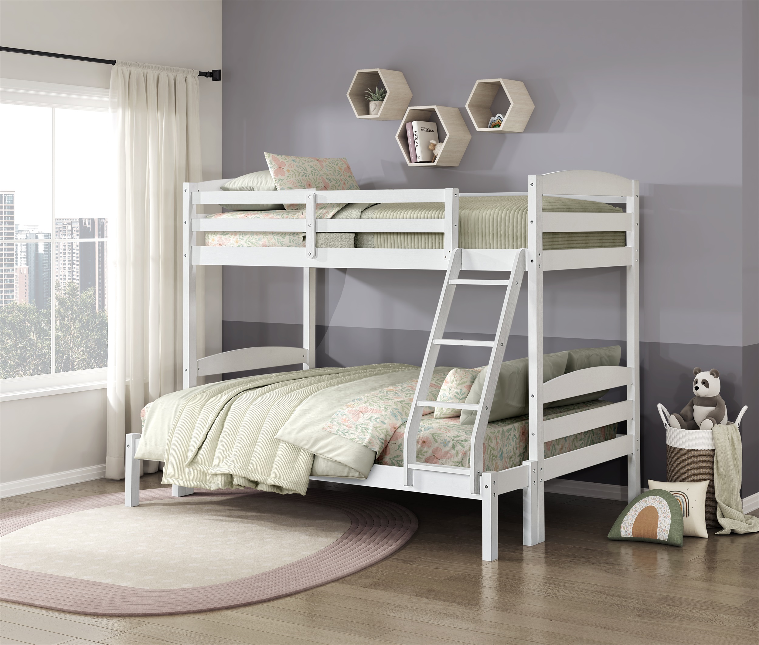 Maximize space and add functional style with this sturdy bunk bed. It features a brushed, white finish and either a single over single option or as a single over double.